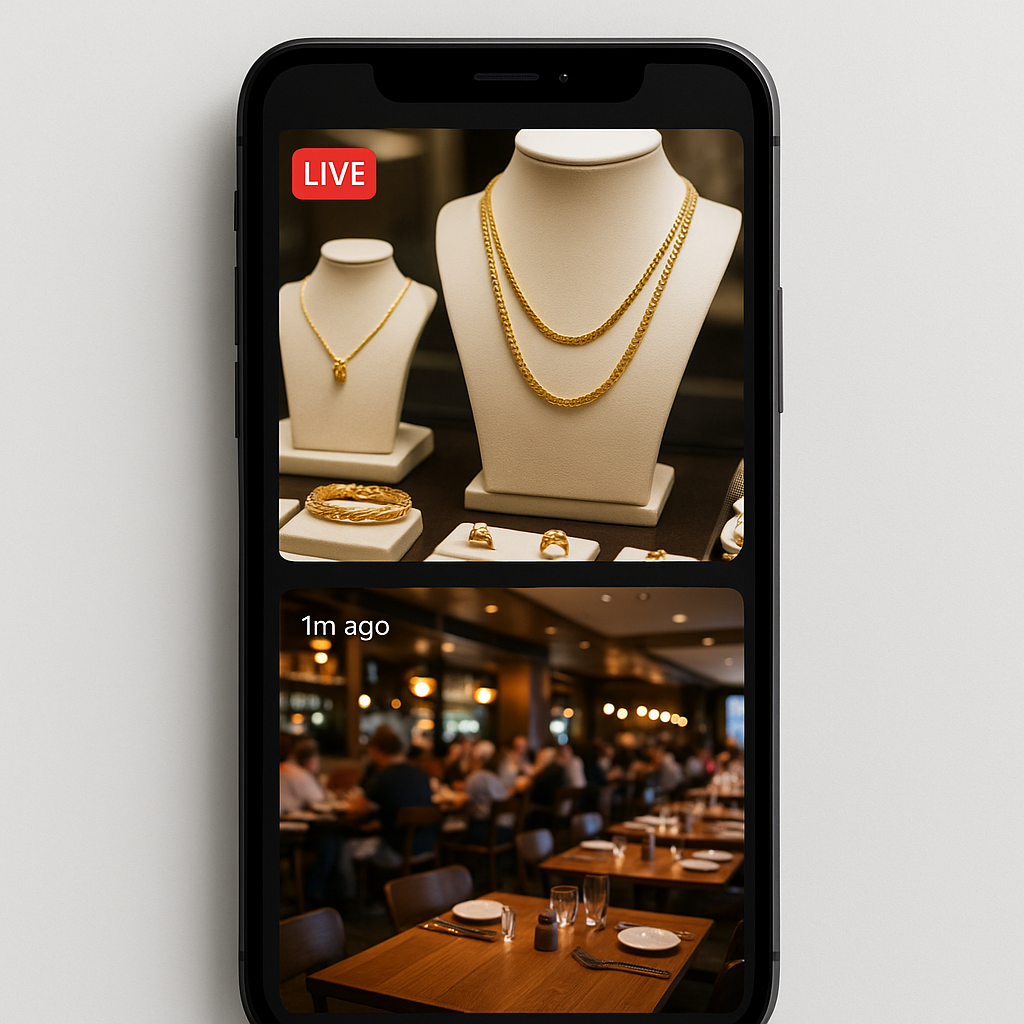 Bring your store or experience to life with live Peeks. From fashion and jewelry to furniture, cafés, gift shops, and attractions—show what’s happening, connect instantly with locals and travelers, and turn curiosity into customers.